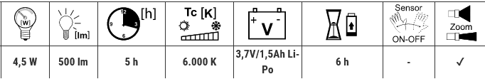 Čelová lampa s akumulátorom, s nastaviteľným vyžarovacím uhlom, TRACON HL500B