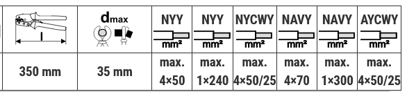 Rezacie náradie k Cu a Al káblom,TRACON RKV300