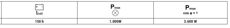 | Maximálna zaťažiteľnosť (Pmax cos φ = 1): | 3600W |