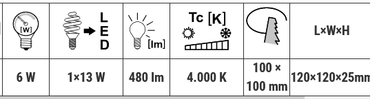 | Náhrada kompaktnej žiarivky: | 1x13W |