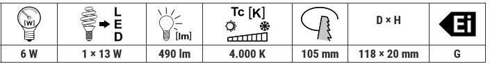 | Náhrada kompaktnej žiarivky: | 1x13 W |