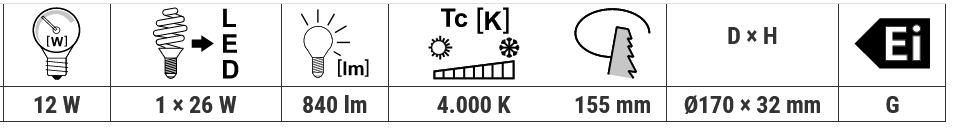 | Náhrada kompaktnej žiarivky: | 1x26W |