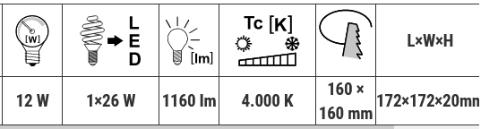 | Náhrada kompaktnej žiarivky: | 1x26W |