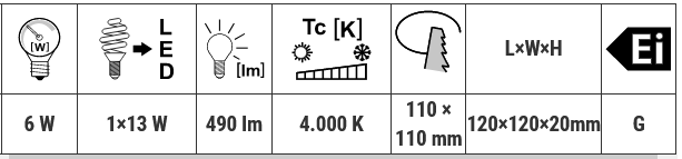 | Náhrada kompaktnej žiarivky: | 1x13W |