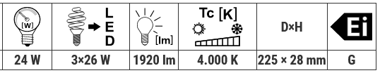 | Náhrada kompaktnej žiarivky: | 3x26W |