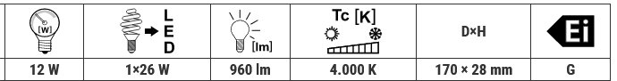 | Náhrada kompaktnej žiarivky: | 1x26W |