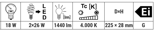 | Náhrada kompaktnej žiarivky: | 2x26W |