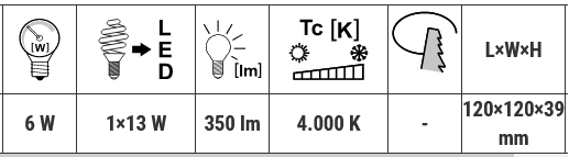 | Náhrada kompaktnej žiarivky: | 1x13W |