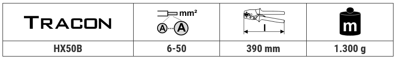 Robustné lisovacie kliešte na neizolované káblové koncovky,TRACON HX50B