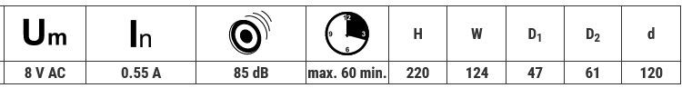 | Menovité ovládacie napätie (Um): | 8 V AC |