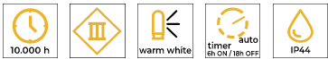 Menovitá doba životnosti L70/B50 pri 25 °C: 10 000 h