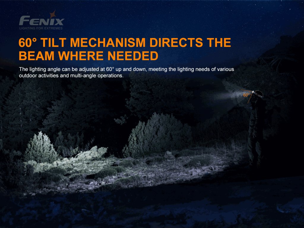 Nabíjateľná čelovka Fenix HP16R disponuje celkovým výkonom až 1700 lúmenov a dvoma svetelnými kužeľmi. Diaľkový reflektor so špičkovou LED Luminus SST-40 vytvára dobre zaostrený svetelný lúč s dosvitom až 260 metrov a druhý reflektor s výkonnou LED Cree XP-G3 S4 má svetelnú stopu veľmi širokú a plynulú až do vzdialenosti 48 metrov. Svetelný tok diaľkového reflektoru je až 1300 lúmenov, reflektor so širokým kužeľom ponúka maximálny výkon 400 lúmenov a neutrálny odtieň svetla. Ovládanie oboch LED je na sebe nezávislé, svetlo z oboch reflektorov možno ľubovoľne kombinovať a dosiahnuť tak krátkodobo svetelného toku až 1700 lúmenov. Diaľkový reflektor ponúka štyri stupne svietenia a široký tri. Naviac je čelovka osadená červenou LED s výkonom 5 lúmenov so signálom SOS.