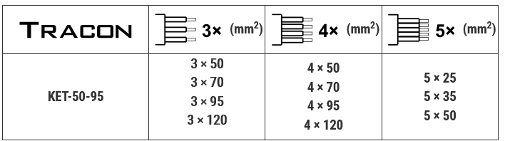 Zalievacia priama káblová spojka, TRACON KET-50-95