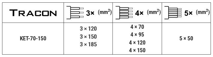 Zalievacia priama káblová spojka, TRACON KET-70-150